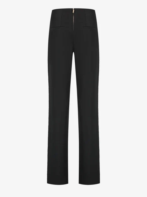 Broek met hoge taille, een ritssluiting op de achterkant en glitter studs op de zijkant. De broek heeft een normale pasvorm en lichte stretch.