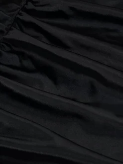 Velvet look jurk met een aansluitende pasvorm, ronde hals en een gedrapeerd detail. De jurk heeft veel stretch, een ritssluitng op de rug en een subtiel NIK&NIK logo.
