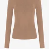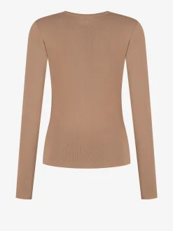 Geribbelde top met een getailleerde pasvorm, rondehalslijn en lange mouwen.