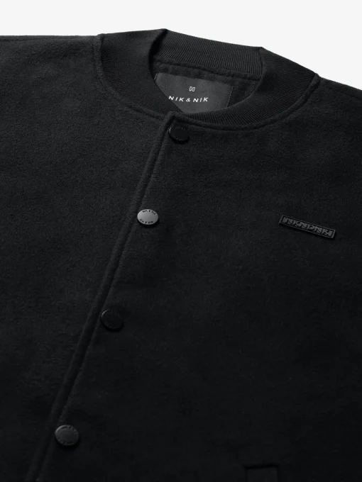 Jack met drukknopen en een NIK&NIK logo op de borst. Het jack heeft een ronde hals, een normale pasvorm en geen stretch.