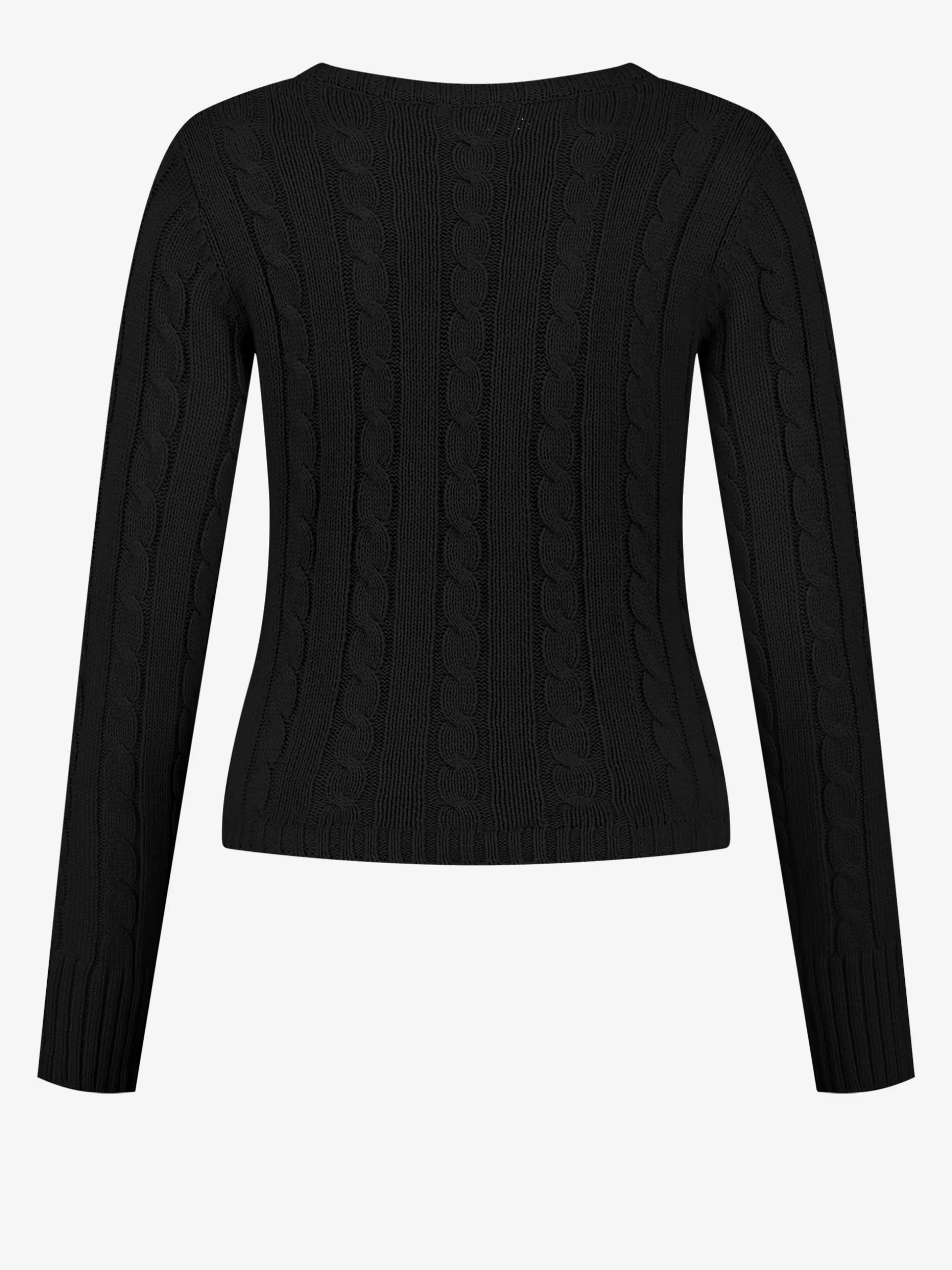 Kabelgebreide trui met N-logo, V-hals en een aangeslotenpasvorm.
