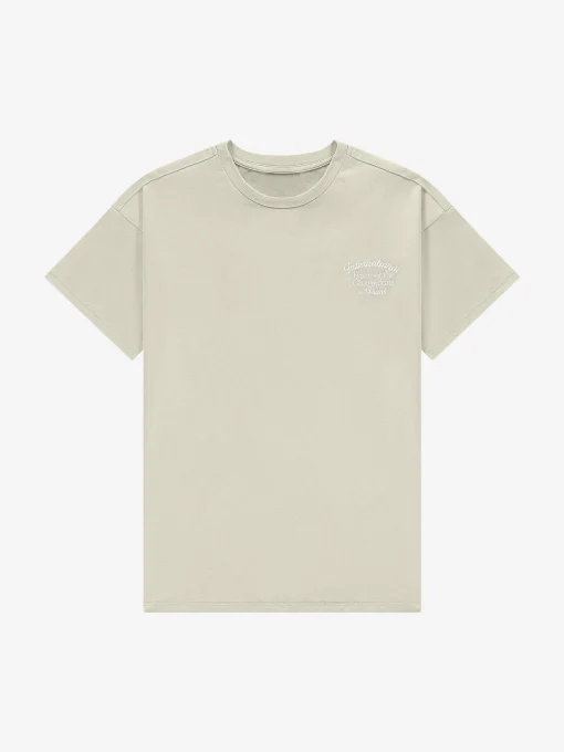 T-shirt met geborduurde tekst op de rug en borst. Het T-shirt heeft een ronde hals en een losvallende pasvorm.