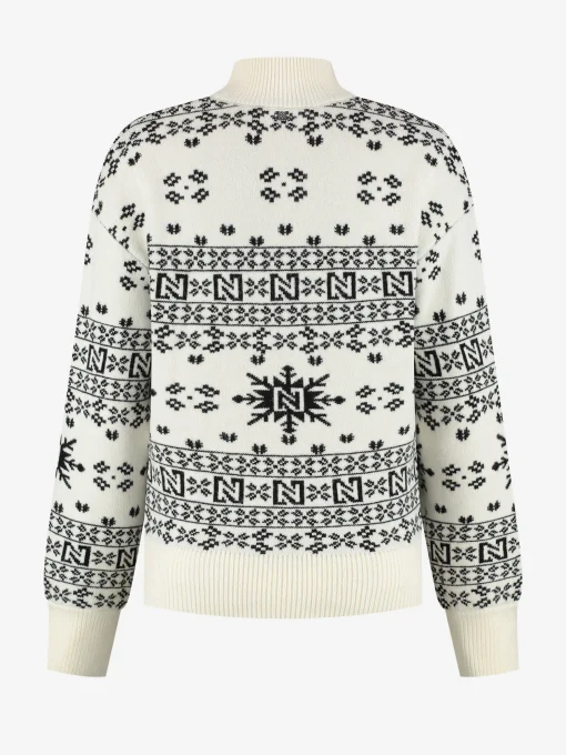 Losvallende trui met een all-over NIKKIE logo patroon. Detrui heeft een col en normale stretch.