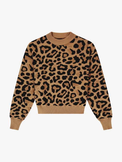 Wijdvallende trui met panterprint, een ronde hals en normale stretsch.