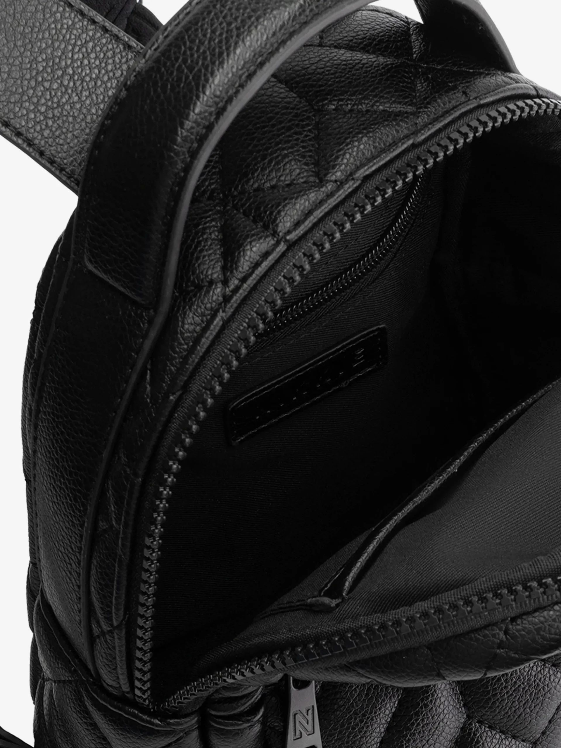 Deze gewatteerde rugzak met leren look heeft een metalenN-logo, verstelbare schouderbanden en een handvat bovenop. De tas is voorzienvan een hoofdvak en een voorvak met ritssluiting, plus meerdere binnenvakken.