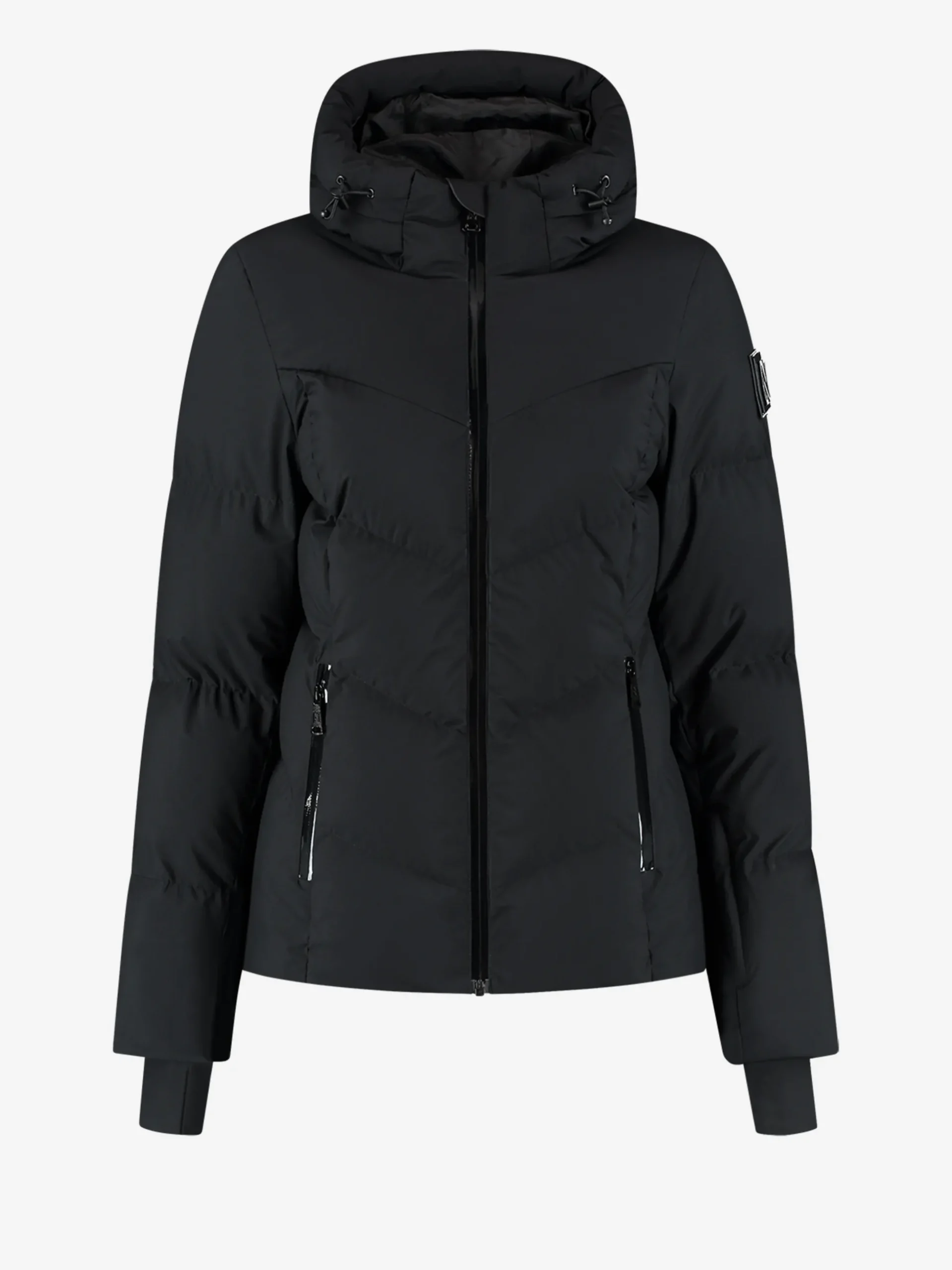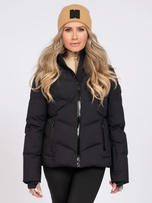 Deze effen ski jas heeft een ritssluiting en eenopstaande kraag met capuchon met het NIKKIE-logo. Voorzien van waterdichteritsen, sneeuwvangers aan de mouwen, ritszakken, binnenzakken, en eenopbergvakje voor een skipas. De jas heeft een waterdichtheidsniveau van 10.000mm en een ademend vermogen van 3.000 mm.