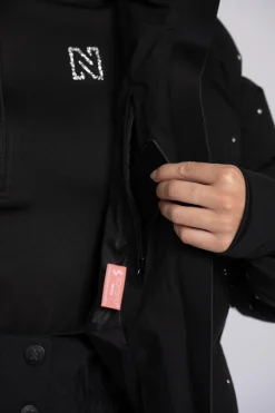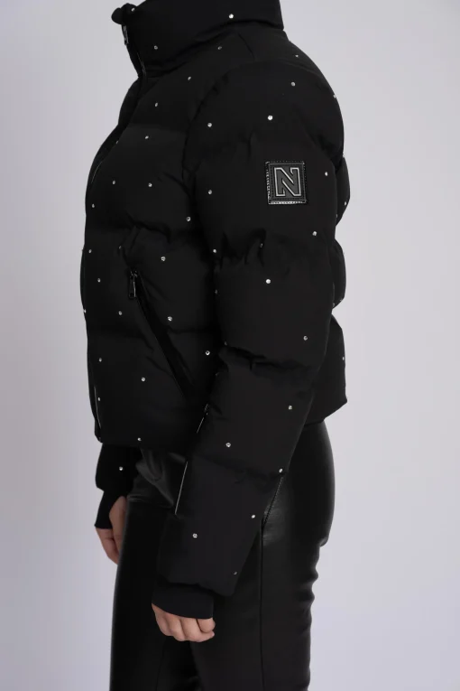 Deze ski jas met all-over Swarovski kristallen heeft eenopstaande kraag, ritssluiting en waterdichte ritsen met logo. Hij is voorzienvan sneeuwvangers aan de onderkant en mouwen, ritszakken, binnenzakken en eenskipasvakje in de mouw. De jas biedt een waterproof level van 5000 mm en eenbreathability level van 3000 mm.