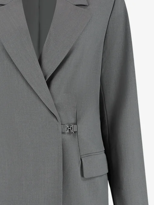 Blazer jurk met een reverskraag, klepzakken en eensubtiel FH detail bij de sluiting. De blazer jurk heeft een normale pasvorm en eenknoopsluiting.