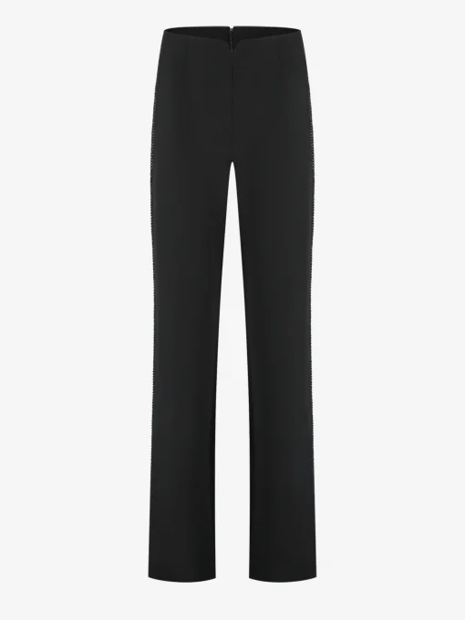 Broek met hoge taille, een ritssluiting op de achterkant en glitter studs op de zijkant. De broek heeft een normale pasvorm en lichte stretch.