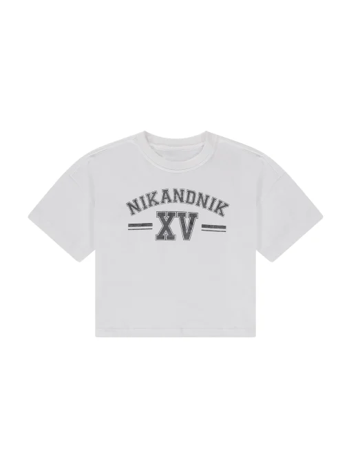 Cropped T-shirt met een grafisch NIK&NIK logo, een ronde hals en stretch.