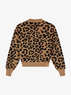 Wijdvallende trui met panterprint, een ronde hals en normale stretsch.