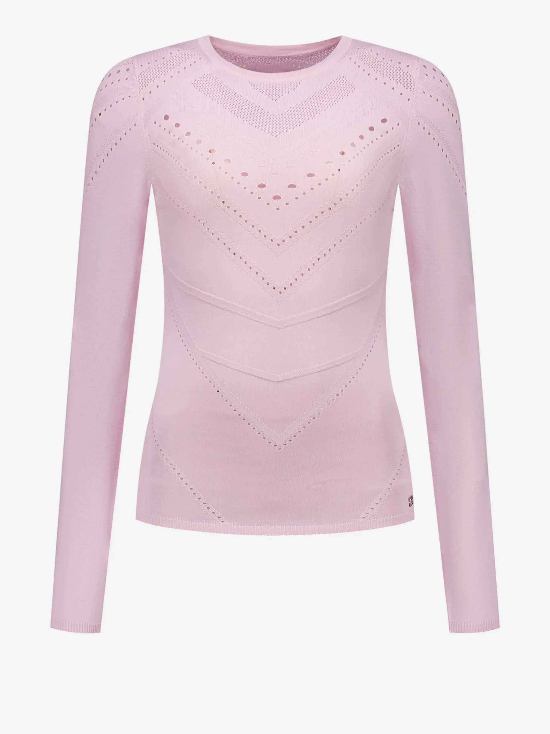 Open gebreide top met ronde halslijn en een aangeslotenpasvorm.