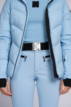 Effen ski broek met een mid waist en rits- enknoopsluiting, voorzien van waterdichte ritsen, sneeuwvangers en verstelbareelastische riem. De broek heeft een flared pasvorm, rubberen beschermendepatches onderaan, en biedt een waterdichtheid van 10.000 mm en ademend vermogenvan 5000 mm.