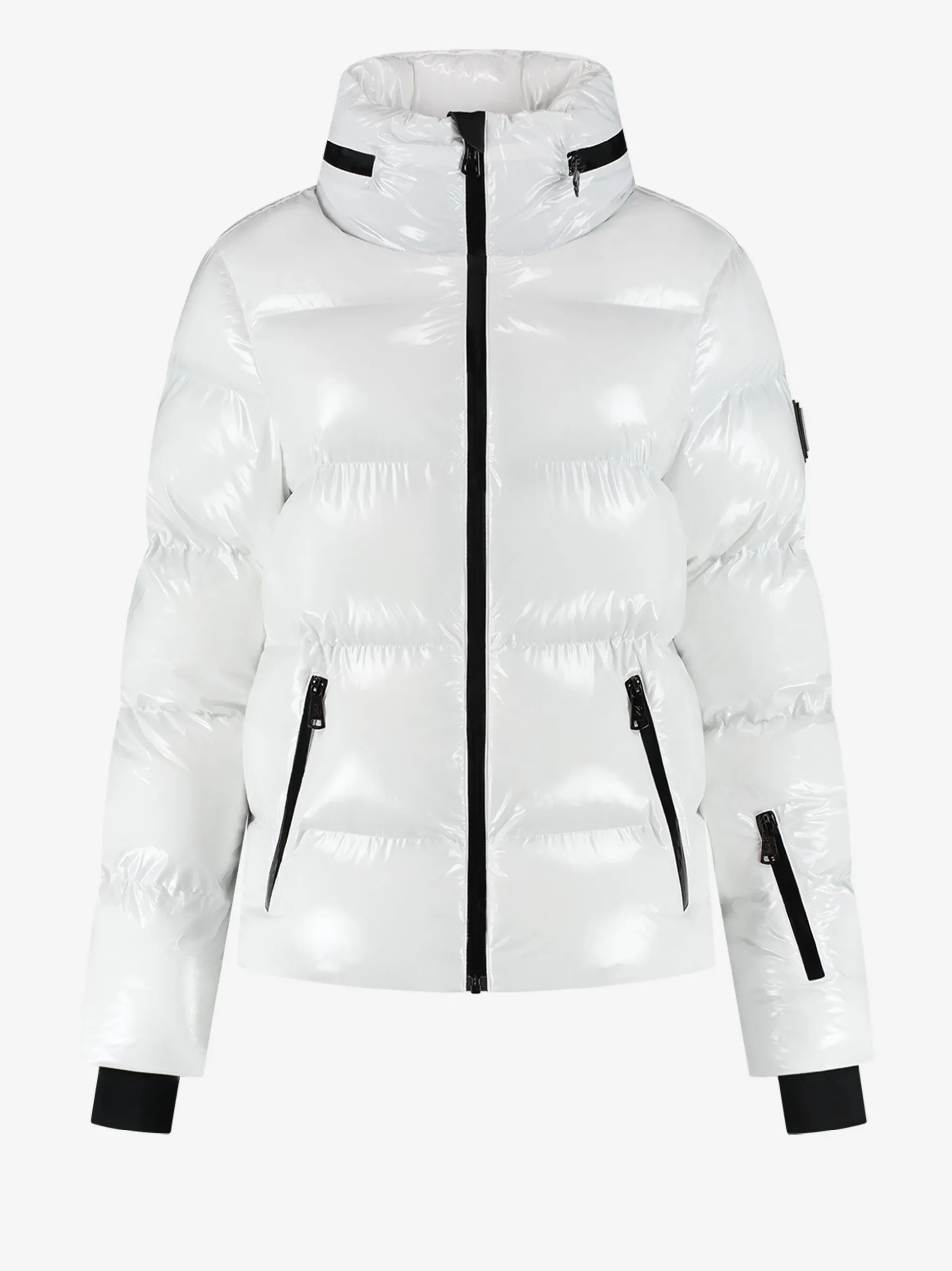 Deze ski jas heeft een metallic look, een ritssluiting eneen opstaande kraag met uitvouwbare capuchon. De jas beschikt over waterdichteritsen met logo en sneeuwvangers aan de onderkant en mouwen. Voorzien vanritszakken, binnenzakken en een opbergvakje voor een skipas in de mouw. De jasbevat geen stretch, een normale pasvorm en een waterdichtheidsniveau van 10.000mm.