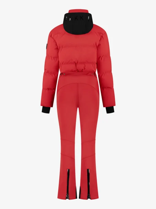 Deze effen ski jumpsuit heeft een mid waist en eenopstaande kraag met opvouwbare capuchon. Hij beschikt over waterdichte ritsenmet logo, sneeuwvangers aan broekspijpen en mouwen, verstelbare tailleband eneen vakje voor een skipas. Met een waterproof niveau van 10.000 mm en ademendvermogen van 5000 mm biedt hij optimale bescherming. De jumpsuit heeft eennormale pasvorm met normale stretch en rubberen beschermende patches bij dezoom.