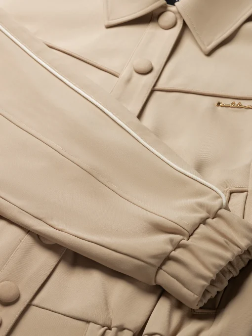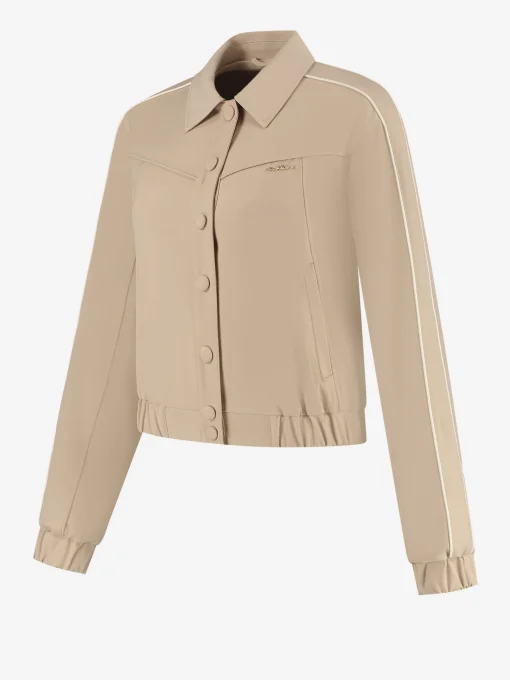 Jack met een wijdvallende pasvorm, een kraag en een subtiel NIKKIE logo. Het jack heeft zakken en geen stretch.